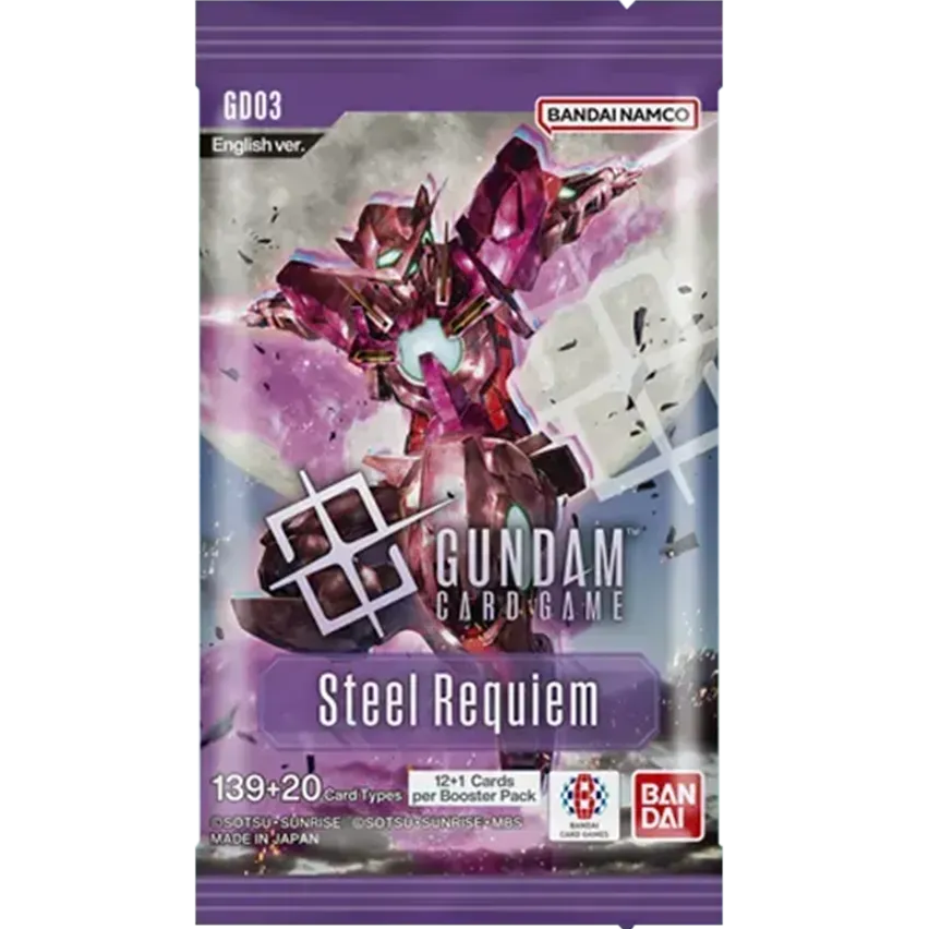 Gundam Card Game: GD03 – Steel Requiem er et booster-display til dig, der vil bygge nye decks, jagte højrariteter og opgradere samlingen med friske kort fra sættet.